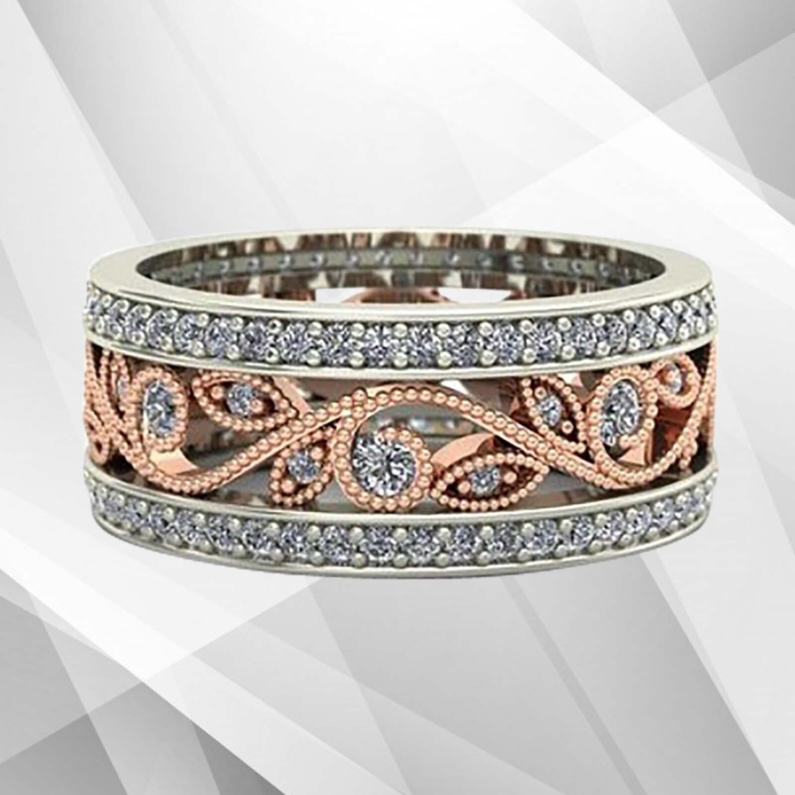 0.35CT 122 CZ Diamonds Two Tone Bridal Band Ring 18Ct Rose And White Gold Over